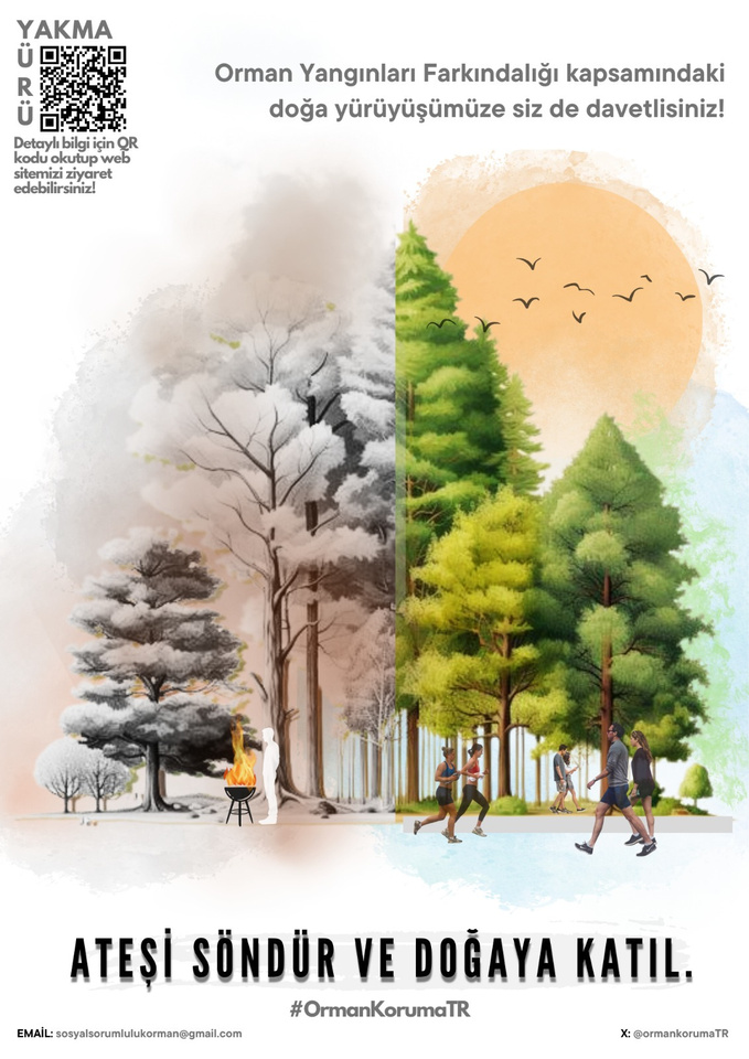 Yürüyüşümüze katıl! Birlikte, orman yangınlarını önlemek için sesimizi duyurabiliriz. Aile, arkadaşlar ve komşularla birlikte gel. Bu yürüyüş, gelecek nesillere temiz bir dünya bırakma taahhüdümüzün bir göstergesidir. Bir adım at, bir fark yarat!